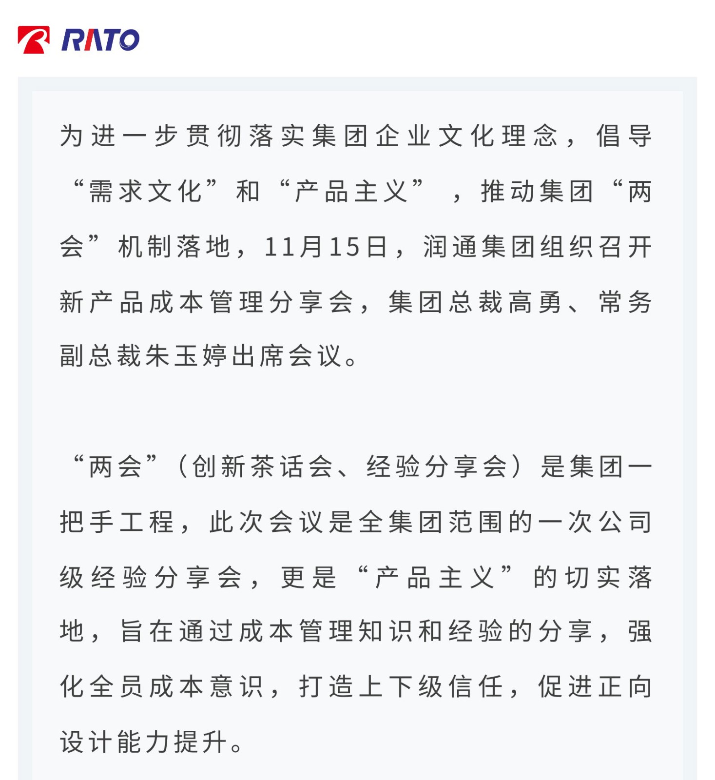 強化全員成本意識,提升正向設計能力——潤通集團召開新產品成本管理分享會