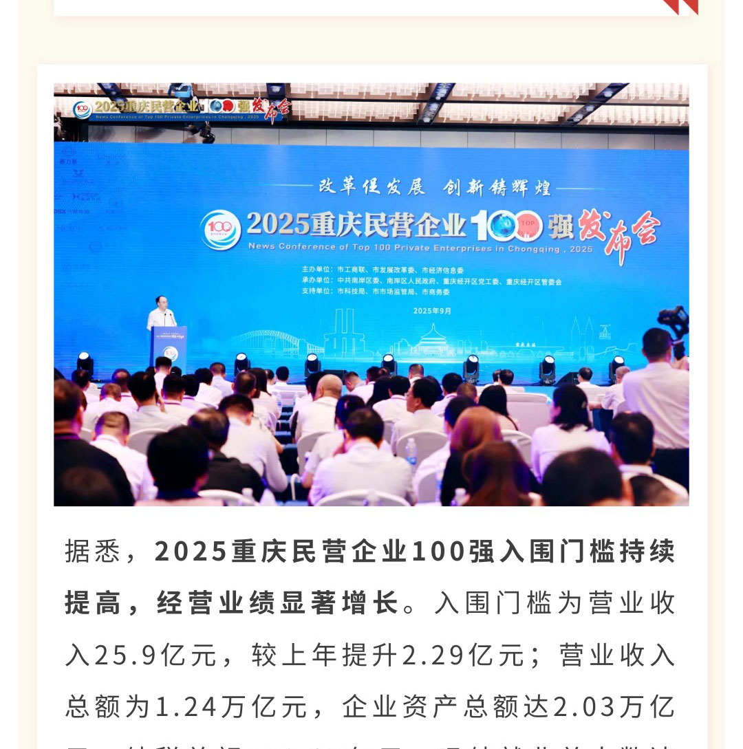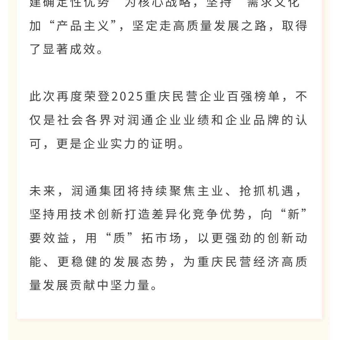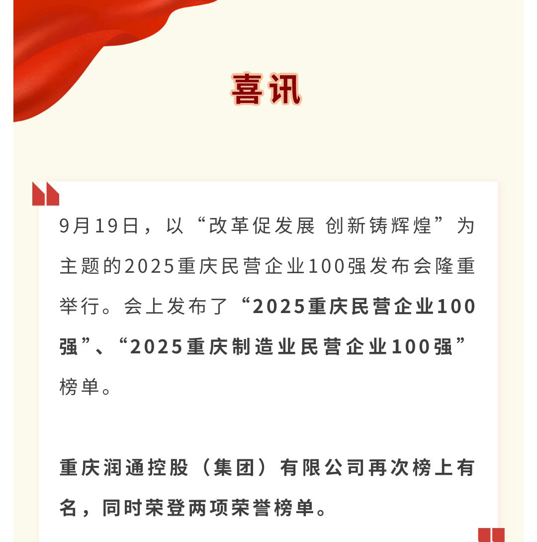 喜訊丨潤通集團上榜2025重慶民營企業百強榜單
